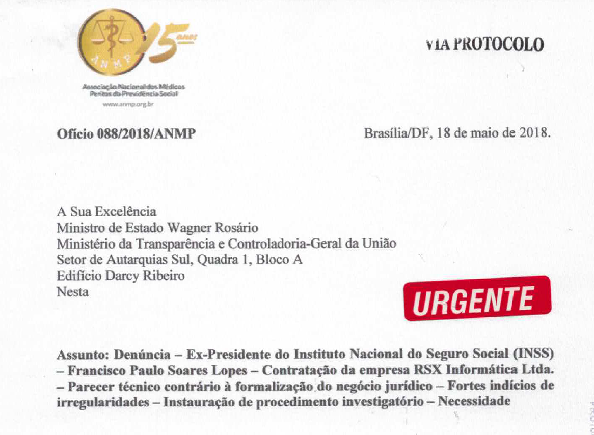Na data de hoje a ANMP protocolou em diversos órgãos de controle (TCU, CGU, MPF, etc) denúncia envolvendo os fatos relatados na grande mídia nos últimos dias sobre condutas supostamente ilícitas cometidas pelo ex-presidente do INSS.