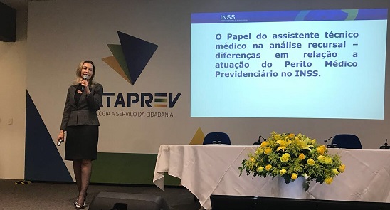 Presente à mesa de abertura, a Diretora de Saúde do Trabalhador, Karina Argolo, palestrou sobre o papel do Assistente Técnico Médico (ATM) na análise recursal e suas diferenças em relação ao Perito Médico Previdenciário (PMP). A Diretora Karina dissertou sobre o papel legal e privativo do PMP na confecção de um laudo médico pericial (LMP) conclusivo sobre a incapacidade laborativa do requerente e que no âmbito administrativo apenas outro PMP tem o poder de modificar esse LMP, quando dentro de rotina própria do INSS. Em seguida, a Diretora explicou aos presentes que o papel do ATM é elaborar um Parecer Técnico Fundamentado (PTF), baseado em análise documental, que servirá como guia consultivo à decisão da Unidade Julgadora sobre o recurso em tela. O ônus da prova cabe ao interessado, portanto o ATM deve evitar pedidos de diligência ao INSS quando o motivo for falta de documentação. O mesmo entendimento vale para os conselheiros relatores, que não podem “pedir perícia médica” ao INSS, devendo se utilizar dos ATM para dirimir suas dúvidas sobre o processo.