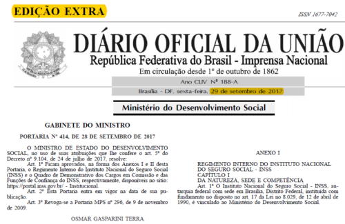 Com o novo texto, espera-se uma melhora substancial da gestão dos trabalhos desenvolvidos dentro do INSS, tanto para a população como para os próprios servidores. Publicada